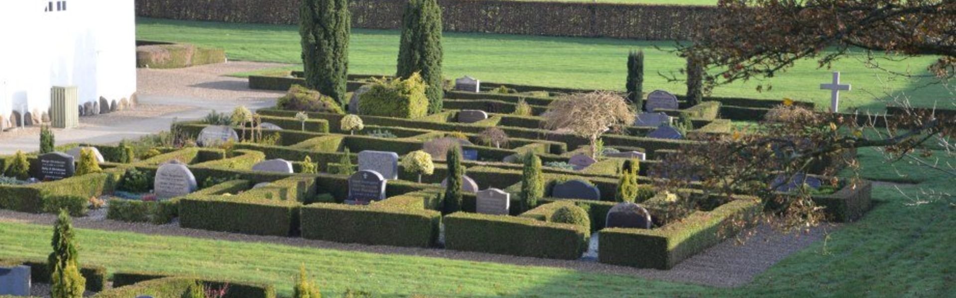 På den klassiske kirkegård hersker der ro med stedsegrønne hække omkring gravene.