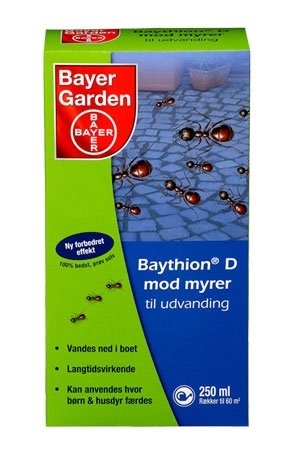 Effektivt og hurtigt mod myrer og andre kravlende og flyvende insekter. Har en langtidsvirkende effekt i 2-4 uger, er lugtfri og misfarver ikke. Midlet virker ved kontakt med de behandlede flader.