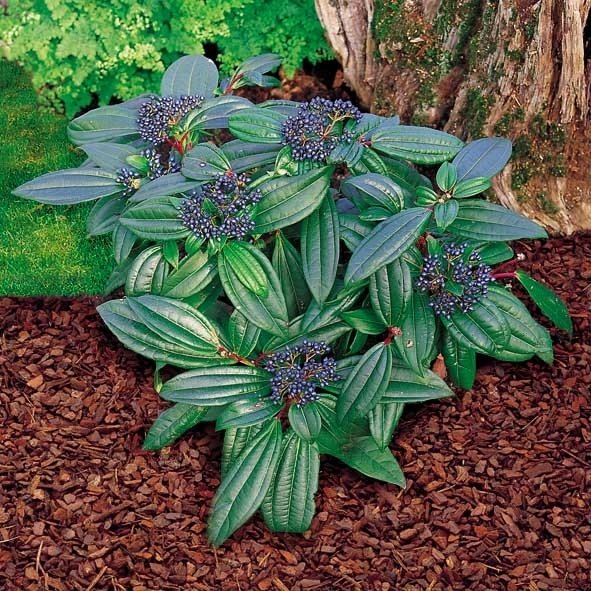 Lav bladplante med hvide/rosa blomster og senere blå bær. Trives bedst på en beskyttet vokseplads, gerne i let fugtigt sphagnum-blandet jord.