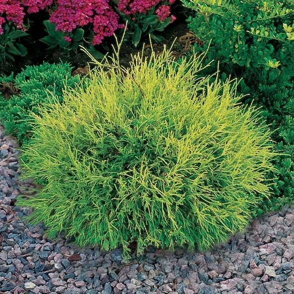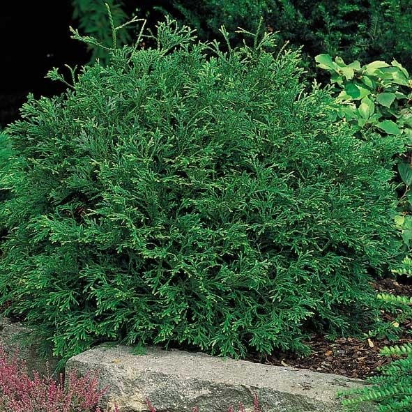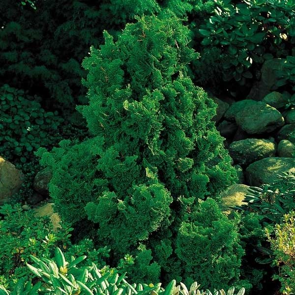 Kruset, kegleformet vækst og en livlig, friskgrøn farve. Tilvækst pr. år 5-7 cm. Velegnet i det lille bed, på kirkegården og i den japansk inspirerede have.