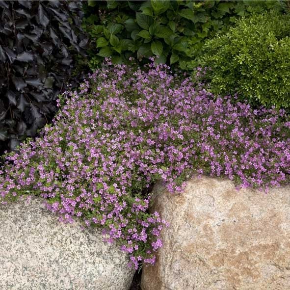 Findes i mange sorter med små grønne blade og rosa, lilla eller hvide blomster midt på sommeren. God til det solrige og lidt tørre stenbed.